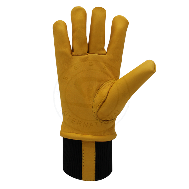 The Pro Winter Gloves are engineered for maximum warmth, durability, and performance in extreme cold conditions. Crafted from premium cowhide grain leather, they combine strength with flexibility, while the keystone thumb design enhances dexterity for precision handling. Inside, a Thinsulate™ 100g and polyester laminated full lining delivers superior insulation without adding bulk, complemented by a soft cotton fleece lining for all-day comfort. The black knitted wrist with leather pulse protection guards against cold drafts, while the elastic shirred back ensures a snug and secure fit